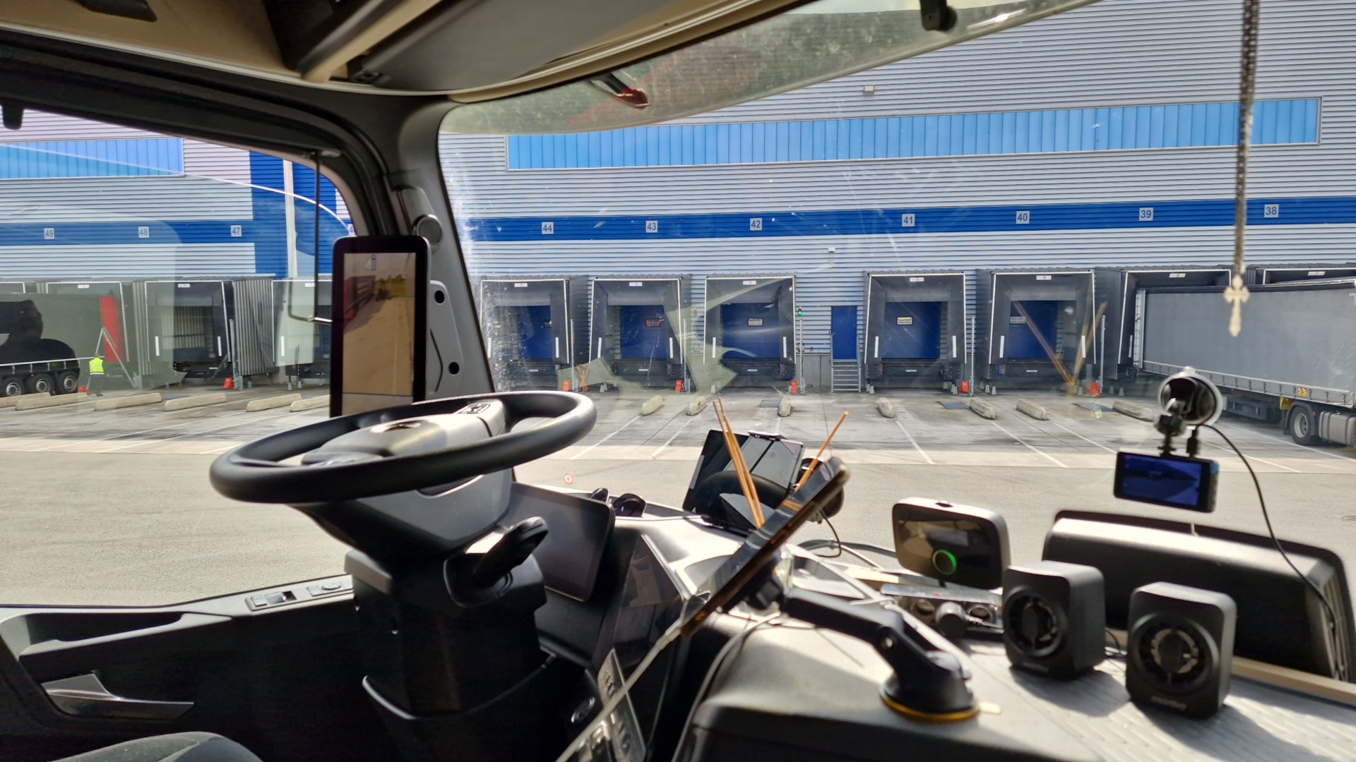 Si vous arrivez plus tôt que prévu, vous pouvez attendre. Vous allez au bureau, si vous avez un numéro de référence sur le bon de commande, allez à l'autre bureau. Il vous faut un CMR avec un numéro de référence ainsi que les numéros de remorque et de scierie. La remorque doit être vide et propre autant que possible. Si tout va bien, vous recevez une carte avec le numéro de la rampe, vous vous dirigez vers la rampe et vous laissez la carte sur la remorque. Il y a des toilettes moyennement propres.